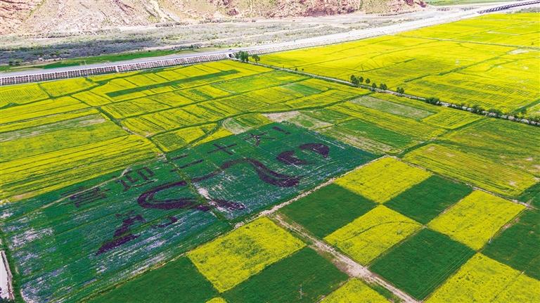 墨竹工卡縣農業(yè)農村局相關負責人告訴記者,這次的創(chuàng)意油菜花田和往年相比大不相同,為了迎接黨的二十大勝利召開,他們圈了400畝地人工種植了專門引進的四種彩色油菜花歷時兩個多月它們開花啦!看出這是什么圖案了嗎?現(xiàn)在記者給你揭曉(最上面是喜迎二十大字,字下中間是哈達、左邊是代表松贊干布和文成公主,右邊是愛心)。怎么樣,大家看出來了嗎?現(xiàn)在扎西崗村的創(chuàng)意油菜花都開了,從現(xiàn)在開始到接下來的半個月都是賞花期,一起去打卡墨竹工卡縣鄉(xiāng)村觀賞小油菜花的勝地吧,喜歡攝影的朋友更不能錯過哦!
