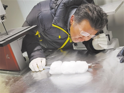 中國科學院青藏高原研究所研究員徐柏青在拉薩冰芯庫測量分析樣品受訪者供圖