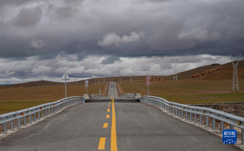這是雙湖縣境內(nèi)的公路和電網(wǎng)(7月14日攝)。新華社記者 晉美多吉 攝