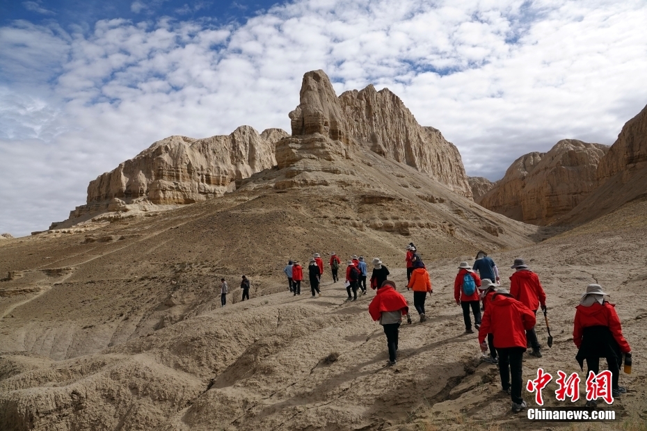 圖為科考隊(duì)員在遺址區(qū)域內(nèi)徒步調(diào)查。中新社記者 孫自法 攝