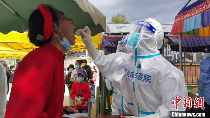 圖為西藏自治區(qū)人民政府駐成都辦事處醫(yī)院醫(yī)療隊在拉薩檢測點為民眾進(jìn)行核酸檢測 西藏自治區(qū)人民政府駐成都辦事處醫(yī)院醫(yī)療隊 供圖