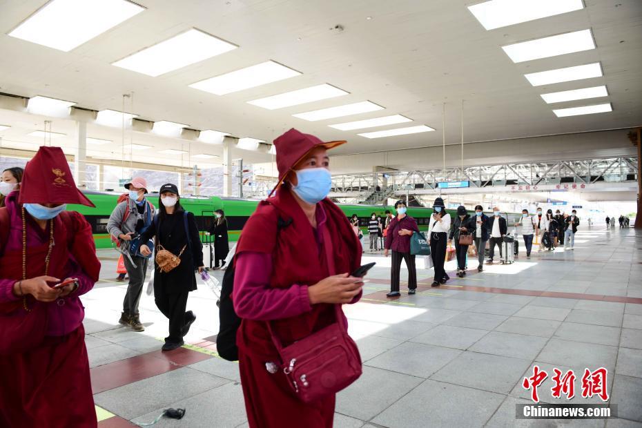 8月11日,旅客有序來(lái)到鐵路拉薩站站臺(tái)上。據(jù)悉,自本次疫情發(fā)生以來(lái)拉薩火車(chē)站日均離藏運(yùn)送旅客數(shù)量約6000人次,貢嘎機(jī)場(chǎng)累計(jì)出港旅客約2萬(wàn)人次。 中新社記者 貢嘎來(lái)松 攝