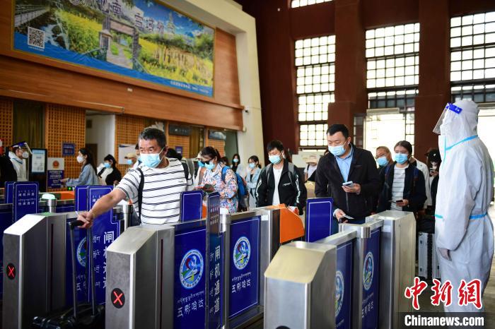 在拉薩火車站候車廳,記者觀察,旅客相較疫情前減少了很多。候車旅客中,有些是出藏游客,有些是返鄉(xiāng)的務(wù)工人員。除了拉薩往返日喀則的列車停運,其他列車正常運行。當(dāng)日下午3點多,乘坐開往北京列車的旅客在工作人員和民警的引導(dǎo)下,陸續(xù)檢票進站。