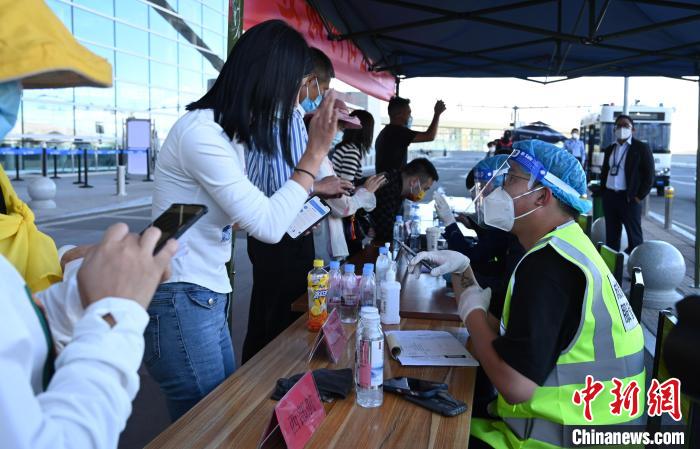 拉薩貢嘎機場航站樓外,設(shè)置了礦泉水免費領(lǐng)取、各航司的機票退改簽處以及問詢處。記者留意到,一處核酸檢測點,未持有48小時內(nèi)核酸檢測陰性證明的旅客正排隊檢測。
