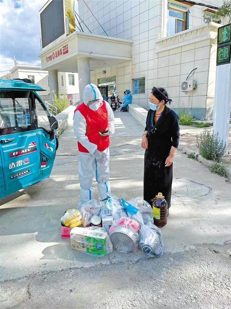 圖為白朗縣下沉黨員在為群眾配送物資。 本報(bào)記者 次仁片多 攝