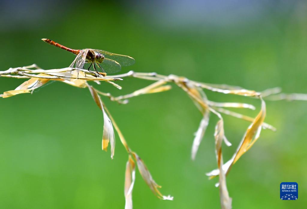 這是在拉薩市一家單位的院內(nèi)拍攝的蜻蜓(8月15日攝)。新華社記者 張汝鋒 攝