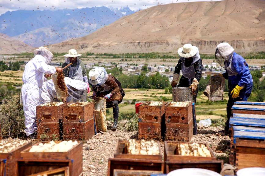 在張亮富的幫助下,山南市錯那縣發(fā)展養(yǎng)蜂產(chǎn)業(yè)。張慧龍攝