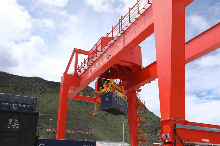 林芝站貨場內,集裝箱門吊不停的作業(yè),一車車貨物不停的裝運,一個個忙碌的身影也清晰可見,他們用堅守換來拉林鐵路貨物的安全運輸,也為林芝市物資保障貢獻了一份力量。
