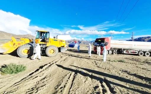9月5日,日喀則市一輛前往方艙醫(yī)院運(yùn)輸液化氣的半掛車陷在醫(yī)院門口沙坑中無法駛出,嚴(yán)重影響方艙醫(yī)院的物資保障,了解到有關(guān)情況后,為助力疫情防控工作,中心立即伸出援手,成立小分隊(duì)趕赴現(xiàn)場(chǎng)開展救援工作。