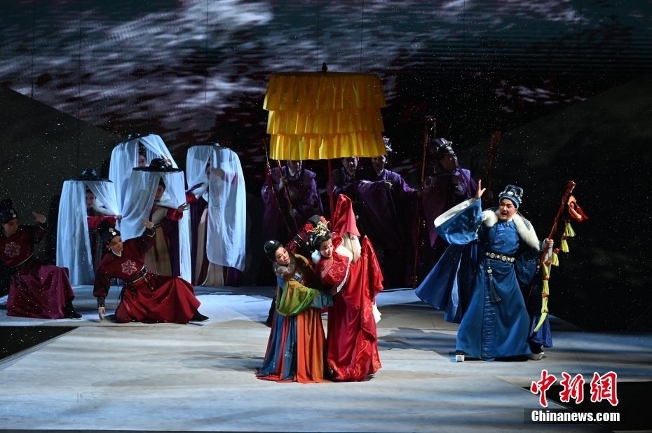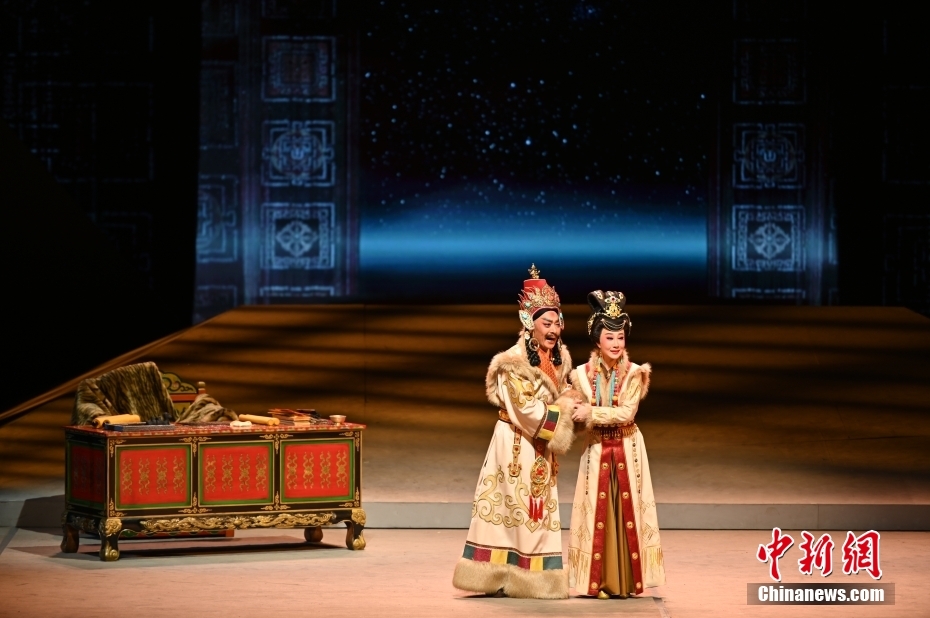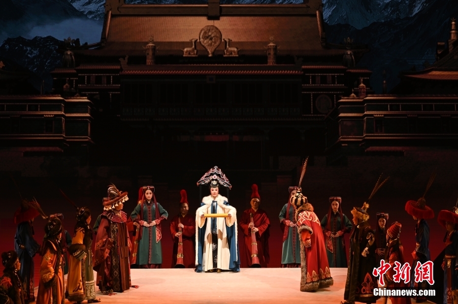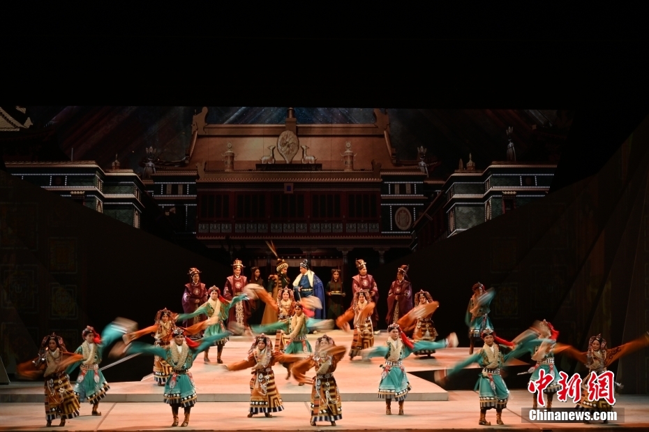 10月11日晚,大型新編歷史粵劇《文成公主》在廣東廣州大劇院首演。該劇以文成公主和親進藏的歷史事件為依據(jù)創(chuàng)作,講述了文成公主堅守吐蕃四十年,促進了吐蕃經(jīng)濟、文化的發(fā)展,加強了漢藏人民的友好關(guān)系。 中新社記者 陳楚紅 攝
