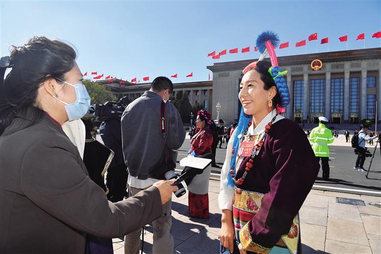 走出人民大會(huì)堂的西藏代表團(tuán)代表,意氣風(fēng)發(fā)、豪情滿懷,他們暢談參會(huì)收獲,紛紛表達(dá)堅(jiān)持以習(xí)近平新時(shí)代中國特色社會(huì)主義思想為指引,認(rèn)真貫徹落實(shí)黨的二十大精神,開啟新征程、續(xù)寫新篇章的信心決心。