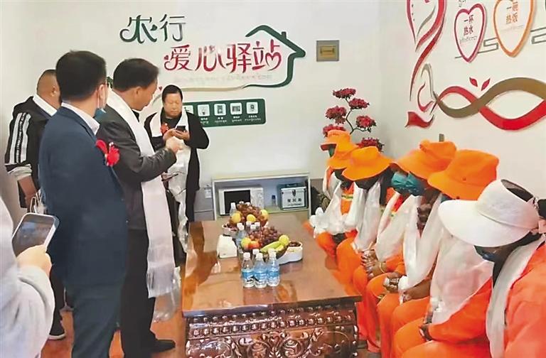 農(nóng)行日喀則分行在臨街網(wǎng)點設立“農(nóng)情暖域——愛心驛站”,為戶外勞動者提供便民服務。