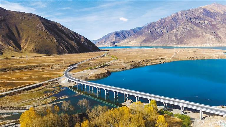 黨的十八大以來(lái),西藏交通運(yùn)輸事業(yè)取得巨大成就,形成了縱橫交錯(cuò)、四通八達(dá)的綜合交通運(yùn)輸網(wǎng)絡(luò)。十年來(lái),全區(qū)公路總里程由6.52萬(wàn)公里增至12.07萬(wàn)公里,高等級(jí)(高速)公路通車?yán)锍逃?8公里增至1105公里,以拉薩為中心的3小時(shí)綜合交通圈正加快形成,拉林鐵路建成投運(yùn),復(fù)興號(hào)首次開上高原……一條條團(tuán)結(jié)線、一條條幸福路,為西藏經(jīng)濟(jì)社會(huì)發(fā)展提供了有力支撐。