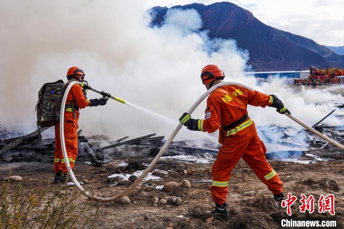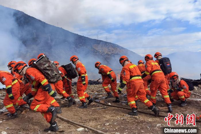 圖為林芝市2022年處置森林火災(zāi)應(yīng)急演練現(xiàn)場?!钣例垺z