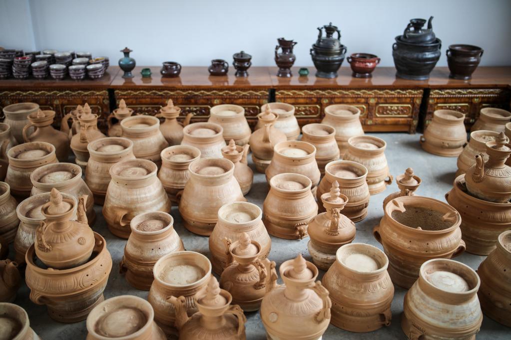 這是塔巴陶瓷泥胎(前)和成品(后)(7月11日攝)。新華社記者 姜帆 攝