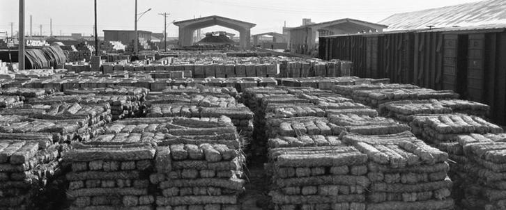 1989年2月,湖南、云南、四川等省專門為西藏人民生產(chǎn)的民族磚茶堆放在青海省格爾木火車站,等待西藏運輸車隊前來裝運。