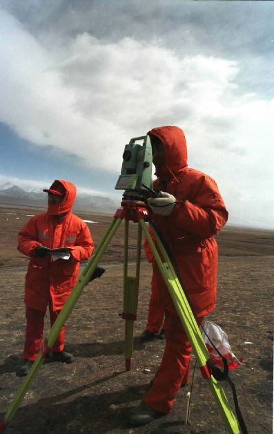 2001年4月,鐵道部第一設(shè)計院的勘測人員在海拔近5000米的四道梁加緊進行青藏鐵路的勘測工作。在國務(wù)院批準(zhǔn)修建青藏鐵路后,鐵道部第一設(shè)計院的上千名勘測人員克服惡劣的自然條件,為青藏鐵路早日開工夜以繼日地工作。