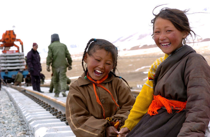 青藏鐵路的建設(shè)工地成為了附近居民最大的關(guān)注點,老鄉(xiāng)們來到工地東瞅瞅、西瞧瞧,好奇地摸摸鐵軌,或者甚至拉著工人們問問這、問問那——盡管很多時候,由于語言不通的緣故,他們并不能夠了解對方在說什么。在故鄉(xiāng)人的臉上,我看到了對未來變化的憧憬,以及對鐵路建成越來越急迫的渴望。