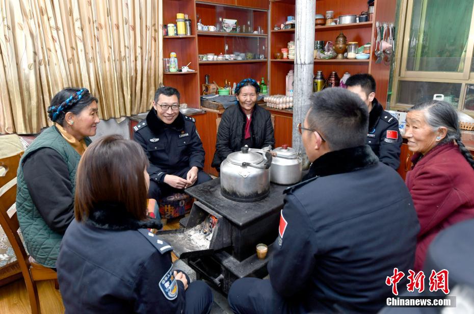 1月5日,移民警察與藏族老阿媽聊家常。李林 攝