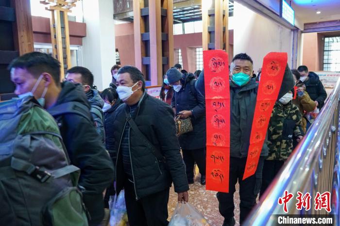 在候車廳,旦增旺久一家獲贈(zèng)了藏語(yǔ)春聯(lián),他介紹,自己是拉薩堆龍德慶區(qū)人,此次是乘火車前往上海觀光旅游?!懊磕甓煳覀兌紩?huì)去其他省區(qū)旅游,云南、四川,還有江西這些我們都去過(guò)了,今年先去上海,再去廣東,計(jì)劃趕在藏歷新年前回到拉薩過(guò)年?!?/p>