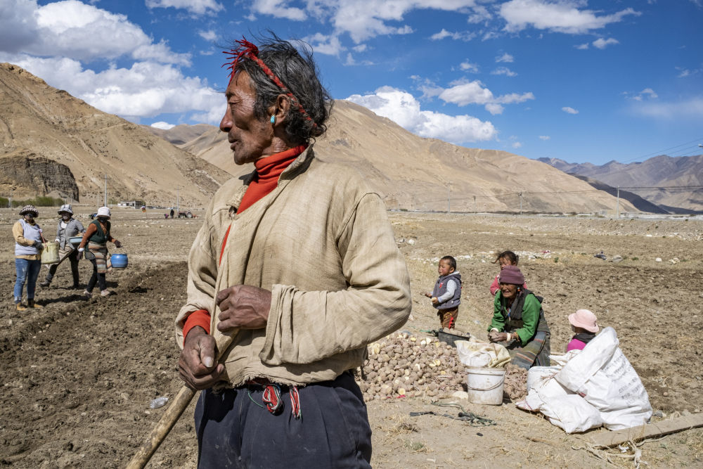 扎西宗鄉(xiāng)的農(nóng)人在田里勞作(2022年5月10日攝)。