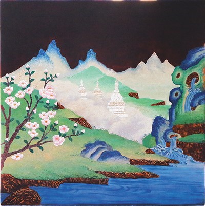 唐卡漆畫(huà)作品《白塔桃花風(fēng)景圖》 阿旺曲扎作
