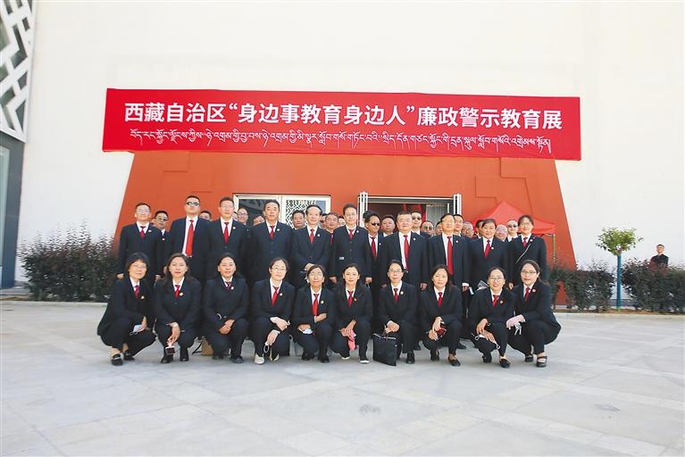 圖為2022年7月8日,自治區(qū)高級(jí)人民法院干警參觀(guān)西藏自治區(qū)“身邊事教育身邊人”廉政警示教育展合影。
