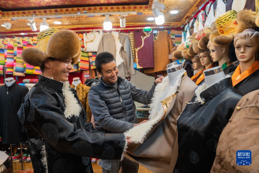 市民白次從加拉的店里滿意地出來,他是從江孜來拉薩打工的,買好新的藏裝,今年要在拉薩過年。