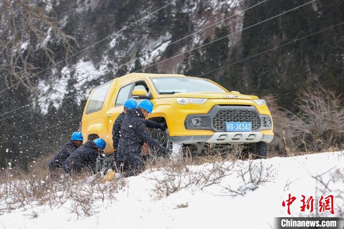 盤山公路上,積雪和暗冰使車輛打滑無法繼續(xù)前行,羅布頓珠和隊友只好下車,給車輛掛好防滑鏈繼續(xù)前行,原本兩個小時的車程,這次花了4個小時才抵達(dá)巡線點。