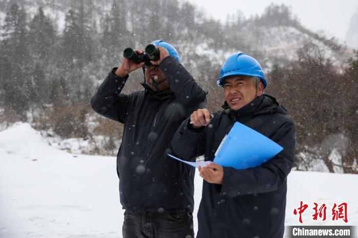 西藏波密縣電力巡護人員相互幫助,趟雪踏冰?!±顤|淮 攝