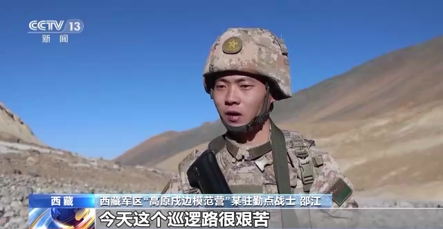西藏軍區(qū)“高原戍邊模范營”某駐勤點戰(zhàn)士 邵江:今天這個巡邏很艱苦,很多地方是我沒有想象到的,比如陡峭的巖壁、冰川,到處存在未知的危險,但是能巡邏在祖國的邊防線上,此刻我的內心是無比驕傲和自豪的,我會跟著老班長的步伐守好祖國的每一寸土地。