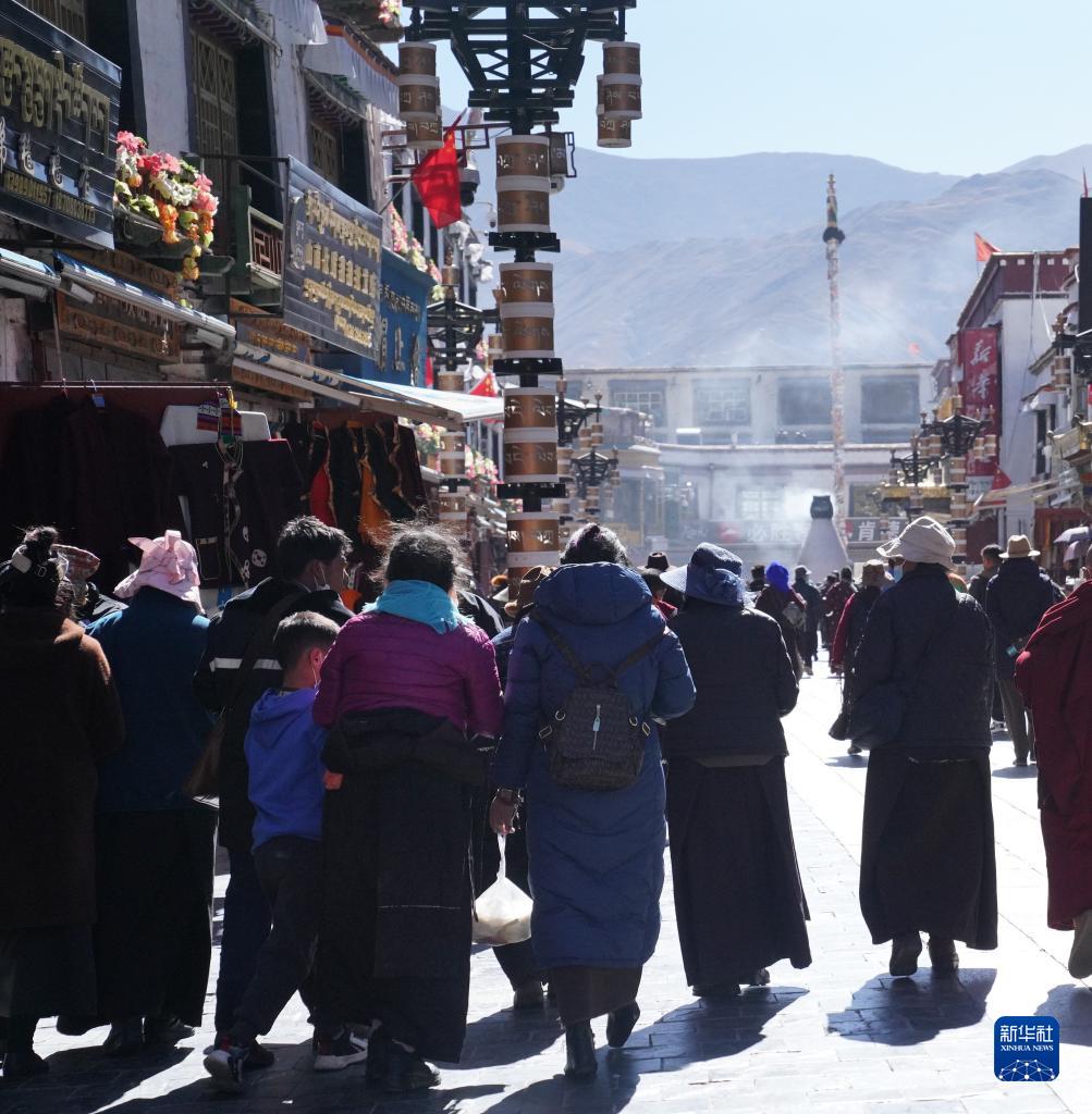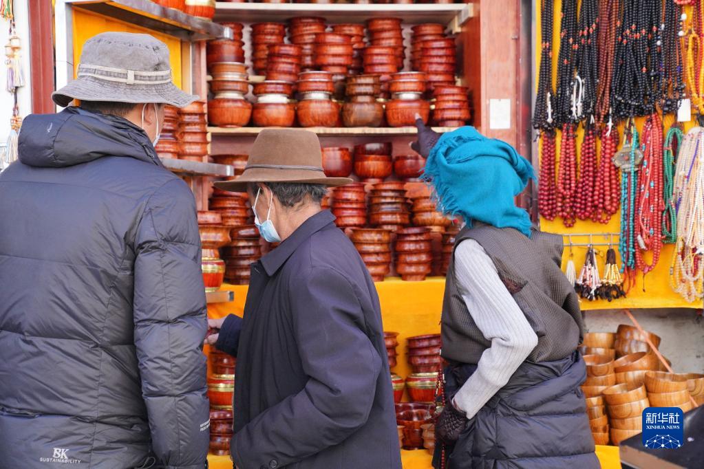 八廓街人來(lái)人往,不少本地群眾到此采購(gòu)藏歷新年所需藏裝、食品等物資。