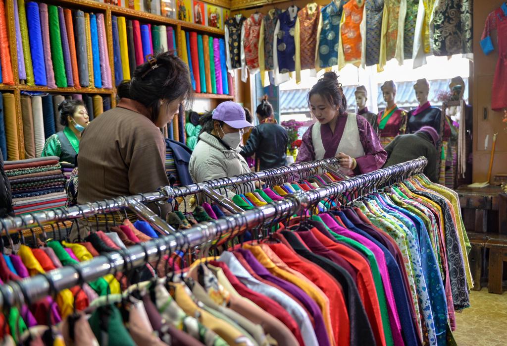 記者看到,古城大街小巷置辦年貨的人群摩肩接踵,市場上酥油、“卡塞”、人參果、五彩青稞穗等藏族傳統(tǒng)年貨應(yīng)有盡有,來自祖國大江南北的特色產(chǎn)品豐富充裕。