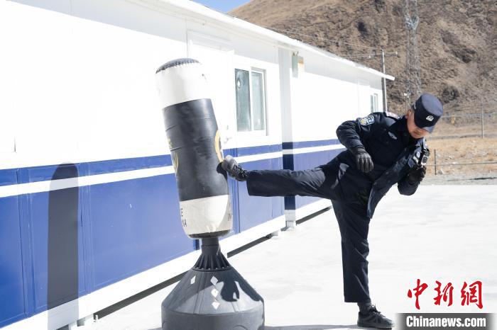 圖為羅布日常鍛煉打拳,他背后是去年12月新建的板房?!∝暩聛硭?攝