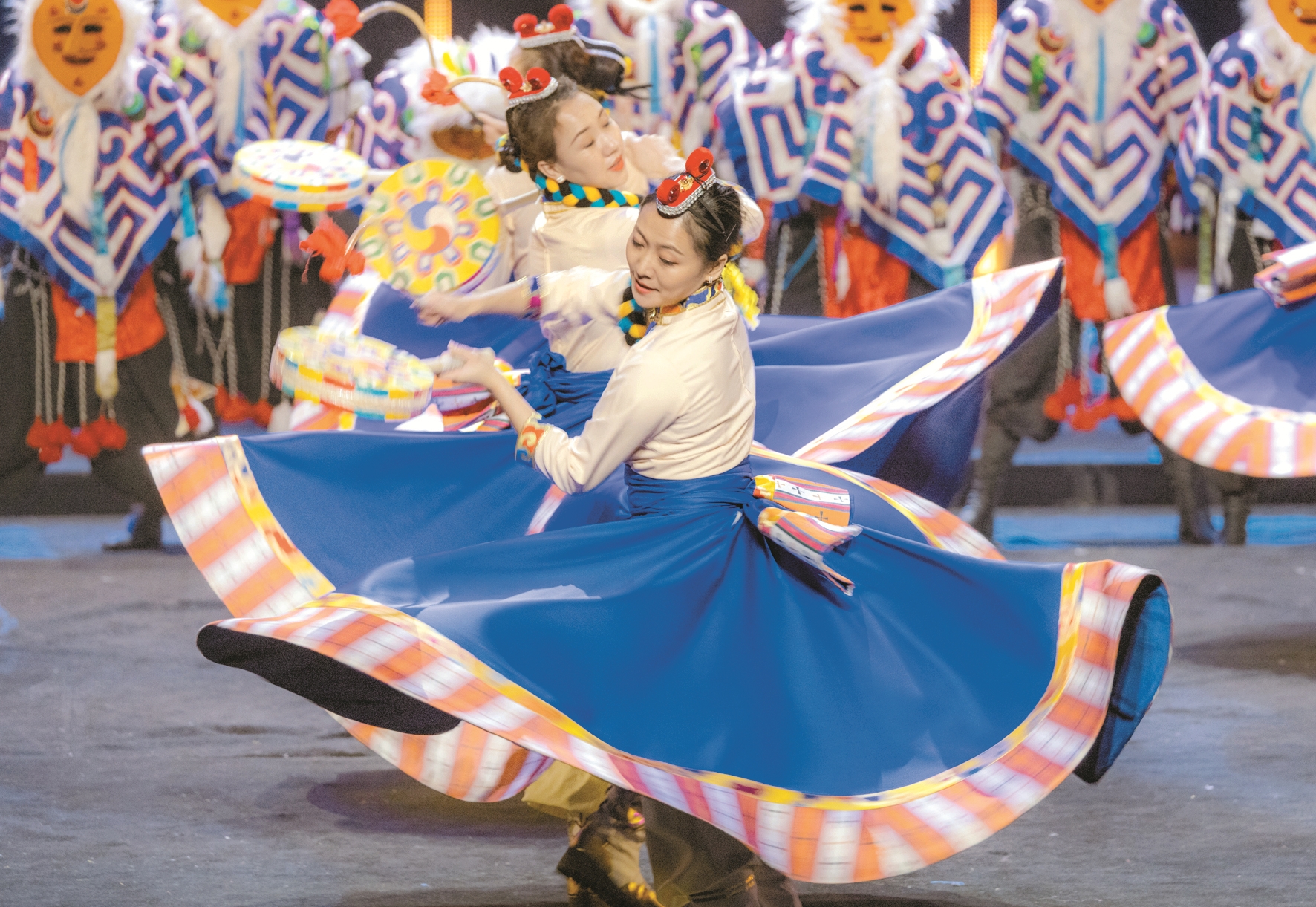演出在開場(chǎng)歌舞《新年 扎西德勒》中拉開帷幕;《扎西熱巴》《豐收的喜悅》等文藝交往交流交融成果的演出,展現(xiàn)了中華優(yōu)秀傳統(tǒng)文化的博大精深和與時(shí)俱進(jìn);“甜野男孩”丁真帶來(lái)的《天空下的溫暖》治愈人心,烏蘭圖雅傾情呈現(xiàn)《拉薩我的家》,次仁桑珠的《歡樂幸福年》喜慶吉祥,雜技《劈風(fēng)斬浪》剛?cè)岵?jì),驚艷眾人;《弘》《羌塘魂》《熱堆諧欽》《熱巴多吉》等節(jié)目接連登場(chǎng),讓觀眾享受到極富西藏特色歌舞的同時(shí),也感受到西藏人民的深情厚誼?,F(xiàn)場(chǎng)更有在江蘇就業(yè)的拉薩籍高校畢業(yè)生和南通西藏民族中學(xué)的孩子們現(xiàn)身,在千里之外聽到鄉(xiāng)音。17個(gè)節(jié)目全面展現(xiàn)了新時(shí)代拉薩新氣象、新面貌,舞美變幻、光效爛漫。現(xiàn)場(chǎng)掌聲不斷,氣氛熱烈祥和。