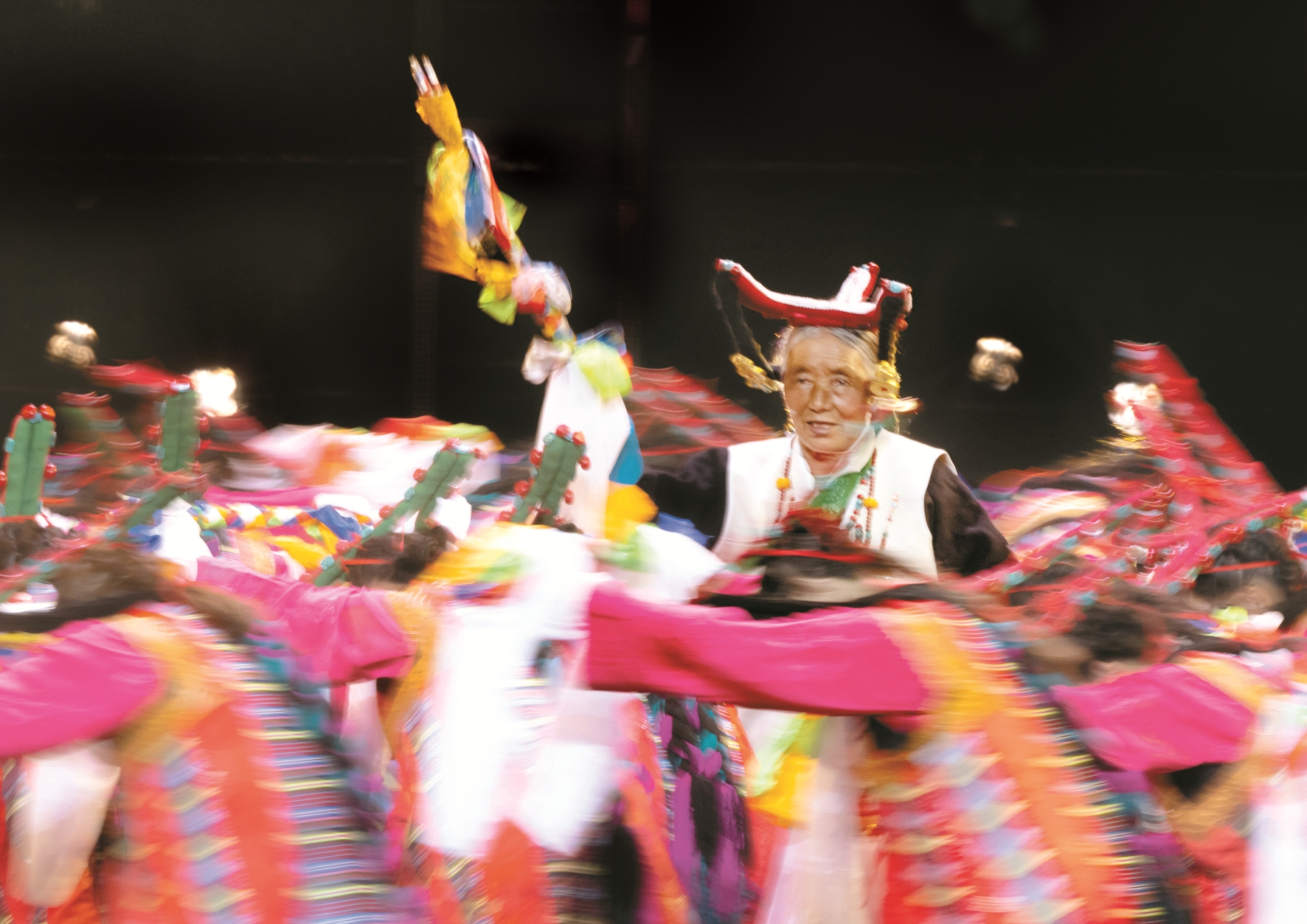 “諧欽”是西藏傳統(tǒng)歌舞節(jié)目,歷史悠久,深受廣大群眾喜愛(ài)。編導(dǎo)吳金曲珍介紹說(shuō):“這個(gè)節(jié)目是根據(jù)熱堆村的一個(gè)原生態(tài)舞種改編而成的,里面表現(xiàn)的是豐收的喜悅和對(duì)家鄉(xiāng)景色的贊美,節(jié)目中表演的34名演員包括一位老阿媽在內(nèi),都是群眾?!?/p>