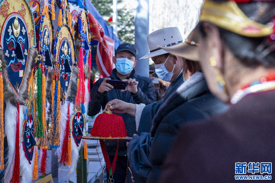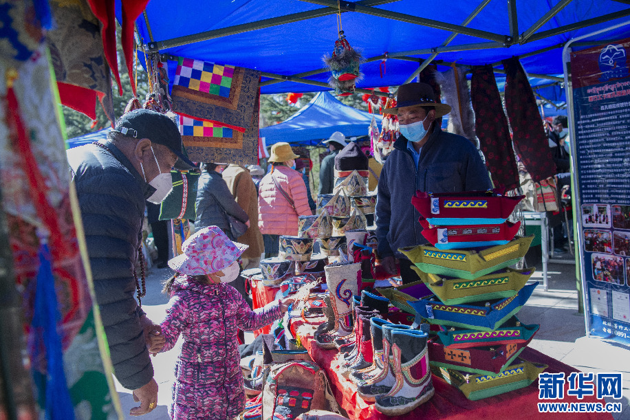 2月14日,群眾在“卓番林”藏族手工藝品牌店展位上挑選特色手工藝品。新華網 旦增努布 攝