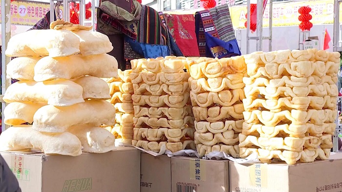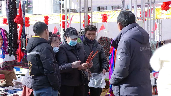 曲珍和女兒是專門從米林縣到市區(qū)采購年貨的,在年貨街上,曲珍買了卡賽、切瑪盒、青稞穗等年貨,這樣的一站式購物讓她十分滿意。
