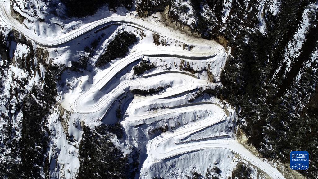 西藏洛扎縣境內(nèi)懸崖峭壁間的通村公路(2022年1月17日攝,無人機(jī)照片)。新華社記者韓曦樂 攝