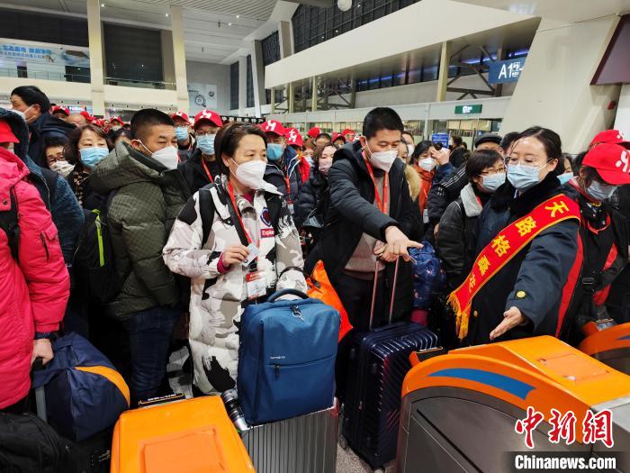 圖為乘坐首趟進藏旅游專列的旅客等待進站。楊紅健 攝