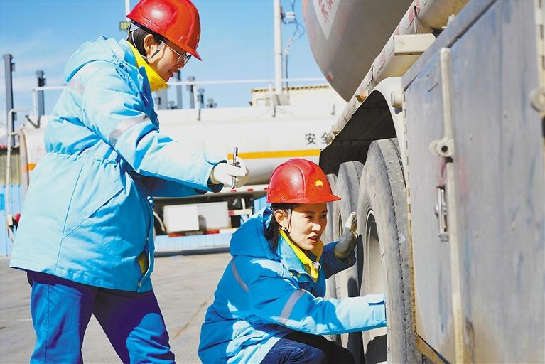 中國(guó)石油運(yùn)輸西藏分公司女員工在養(yǎng)護(hù)車(chē)輛。次仁平措 攝