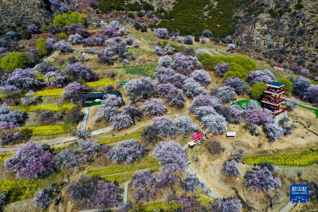 鳥瞰嘎拉村桃花園(無人機(jī)照片,3月24日攝)。新華社記者 姜帆 攝
