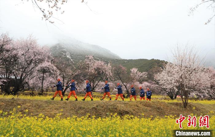 林芝市森林消防支隊(duì)指戰(zhàn)員穿梭在桃林中,對(duì)景區(qū)重點(diǎn)部位和消防設(shè)施進(jìn)行消防巡查,及時(shí)應(yīng)對(duì)可能發(fā)生的突發(fā)事件,做好滅火救援各項(xiàng)準(zhǔn)備工作。