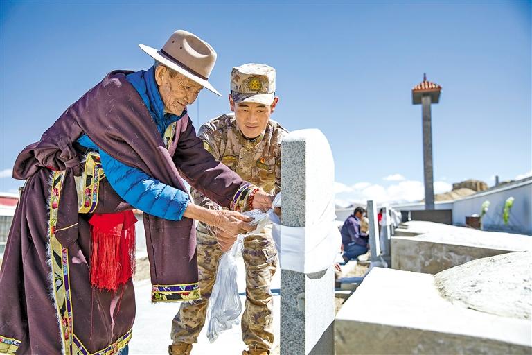 圖為軍民代表在阿里地區(qū)札達(dá)縣烈士陵園緬懷革命烈士。劉曉東 記者 次仁平措 攝