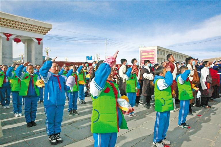 28日,西藏大學(xué)、拉薩市教育局組織學(xué)生開(kāi)展“升國(guó)旗、唱國(guó)歌”活動(dòng),并觀看《復(fù)興之路》和《人格的力量——中國(guó)共產(chǎn)黨人的家國(guó)情懷》兩個(gè)直播課堂,革命先烈為實(shí)現(xiàn)國(guó)家解放和民族復(fù)興前仆后繼、視死如歸的英雄事跡深深打動(dòng)了每一名學(xué)生。西藏大學(xué)學(xué)生向秋雨說(shuō):“我們要以史為鑒,開(kāi)創(chuàng)未來(lái),扎實(shí)學(xué)好專業(yè)知識(shí),維護(hù)祖國(guó)統(tǒng)一,鑄牢中華民族共同體意識(shí),讓青春之花在祖國(guó)最需要的地方絢麗綻放?!?/p>