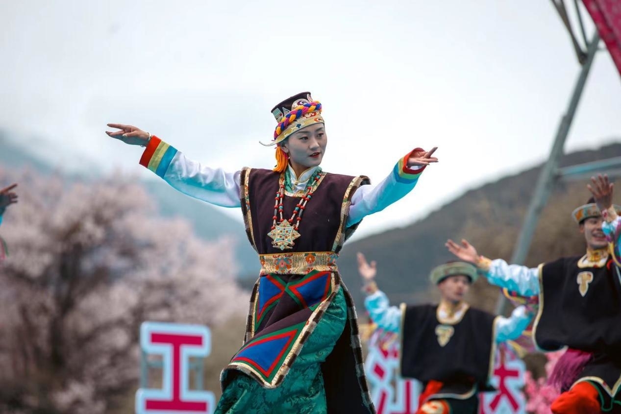 上午10:00開始的的群眾文藝聯(lián)歡會,以歡快的《飲酒踏》開場,尼洋河水吟唱春日韻律,米拉雪山涌動喜慶樂曲。