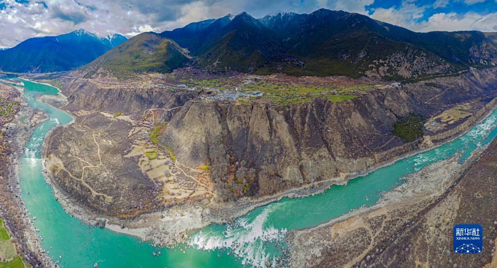 鳥(niǎo)瞰雅魯藏布江畔的索松村(無(wú)人機(jī)拼接照片,4月5日攝)。新華社記者 姜帆 攝