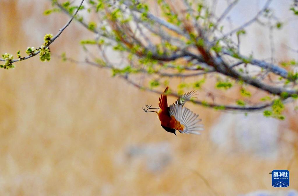 小鳥在拉薩河畔飛舞(4月16日攝)。新華社記者 張汝鋒 攝