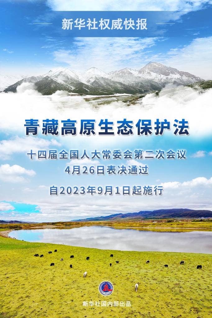 4月26日,十四屆全國人大常委會第二次會議表決通過青藏高原生態(tài)保護法。法律自2023年9月1日起施行。