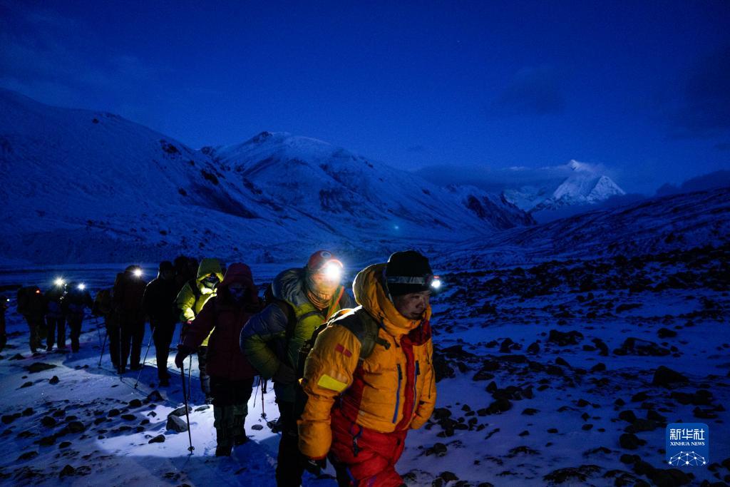 5月3日,登山愛好者在凌晨出發(fā),開始攀登海拔6010米的洛堆峰。新華社記者 孫非 攝